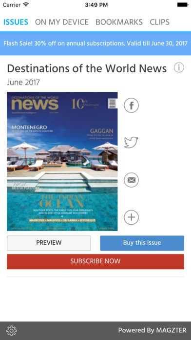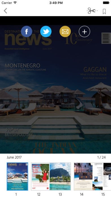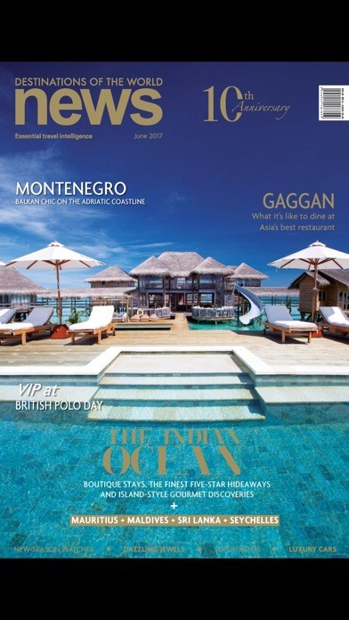 App Storeより引用Millions of affluent holidaymakers and business travellers flying in private jets, first and business class cabins and staying in luxury five star hotels are introduced to Destinations of the World News magazine every month. Since its debut in July 2006, Destinations of the World News has remained the world's authority on the luxury travel lifestyle. Offering monthly insight into the hottest destinations, the most luxurious hotels and extraordinary travel experiences money can buy. Recognised for it’s intelligent and sophisticated content environment, Destinations of the World News has attracted a discerning global audience of true aficionados who are genuinely passionate about luxury in every aspect of their lives. Whether searching for exotic escapes or the latest supercars, they look to Destinations of the World News as the authoritative travel and lifestyle magazine to recommend products with both style and substance.