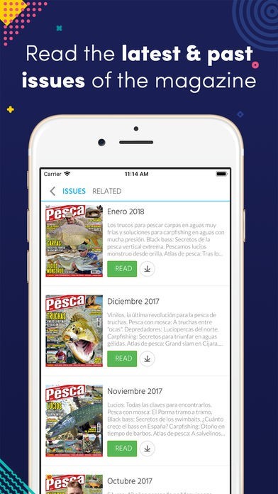 App Storeより引用Feder Pesca es la revista sobre pesca deportiva líder en quiosco. En ella encontrarás los mejores reportajes y artículos prácticos sobre pesca de depredadores y otras especies: Black Bass, lucio, siluros, carpas, truchas, y pesca internacional. Las mejores técnicas, fotografías y reportajes realizados por los más reputados profesionales del mundo del periodismo de la pesca deportiva. Si te apasiona la pesca, tu revista es Feder Pesca.