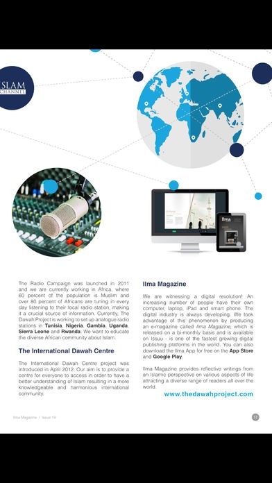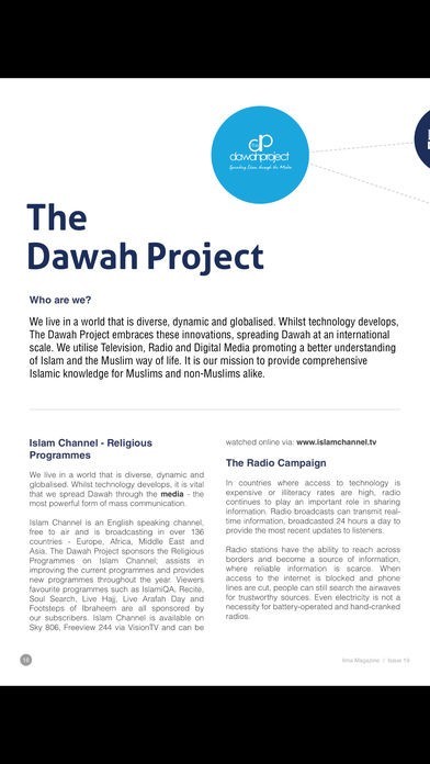App Storeより引用The Dawah Project introduces you to Ilma Magazine - an informative and interactive magazine inspired by the Arabic word 'Ilm', which translates as ‘knowledge’. The magazine provides reflective writings on the various aspects of life attracting Muslim and non-Muslim readers from all over the world.