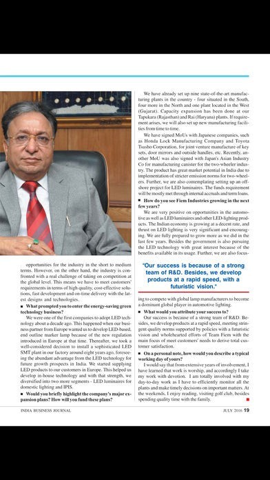 India Business Journal was launched in 2005 and today it has positioned itself as a platform for the growth-oriented thinking among the dynamic players of corporate India. It has redefined editorial competence in India with a strong readership base comprising businessmen, entrepreneurs, top executives, various investment and trade promotion bodies, policy-makers, bureaucrats and a wide cross section of society across the country who subscribe to the ideology.... “The only constant is change”.