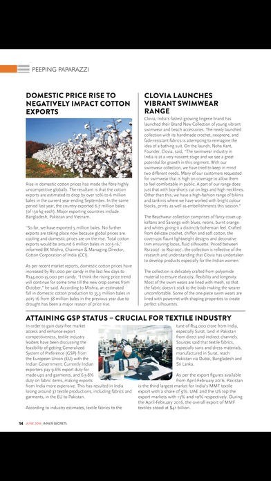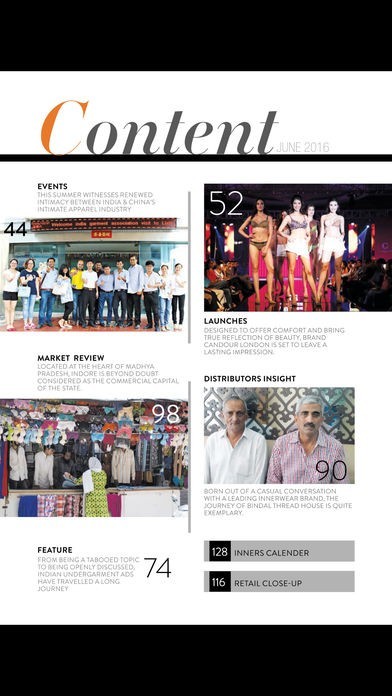App Storeより引用Started in the year 2006, Inner Secrets has managed to carve a niche for itself in a short span of time as the most informative and comprehensive journal on the intimate apparel industry. Published by Peppermint Communications Pvt. Ltd., the magazine has editions in two languages - English and Hindi. It has a strong readership among Indian retailers; Heads of departmental stores, distributors, manufacturers of raw materials, intimate wear brands, marketers, e-commerce businesses, etc. Its Hindi edition has circulation strength of 25,000 copies whereas its English edition has a circulation of 35,000 copies. Owing to its diverse readership, Inner Secrets’ content includes retailing innovations online as well offline, technological innovations in the field of textiles and foams, interviews of business tycoons and manufacturers, Head-Of-Department, coverage of various international trade fairs and business related events, expansive cover-stories on manufacturing and retailing aspects, etc.