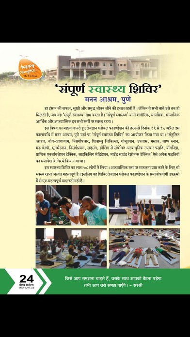 Another point that makes Yogya Aarogya exceptional is that it helps you attain total health via spiritual understanding. Additionally, what makes this magazine easily applicable by readers is content such as properties and medicinal uses of various naturally occurring substances, benefits of different therapies, and sections like smart tips' (Smart tips from Granny – which suggests simple and beneficial household remedies).