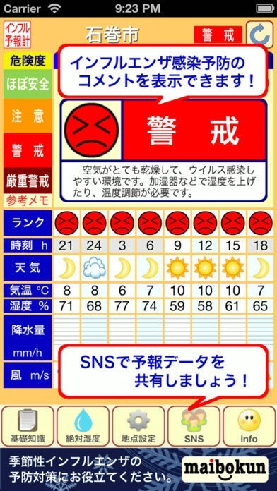 湿度と気温から24時間以内のインフルエンザ危険度をお知らせしてくれるアプリ