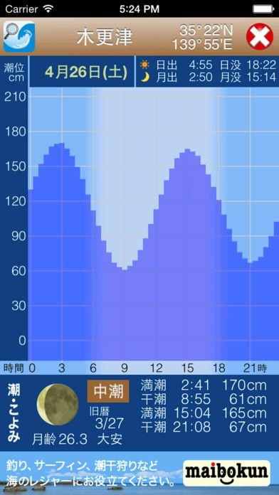 潮の満ち引きを手軽にチェック!マリンレジャーに役立つ!
