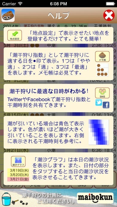 アプリを使ってチェックした潮汐情報をSNSを使ってシェアすることが出来るようになっているので、仲間や家族とマリンスポーツなどを楽しむ相談をするときにも情報を共有できます。