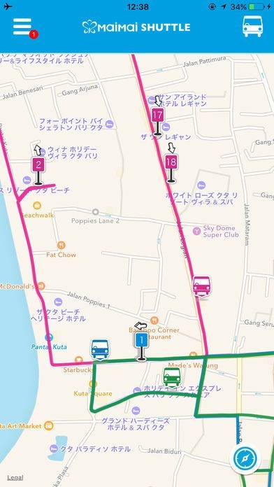 1)MaiMaiシャトルのバス、バス停の位置の確認