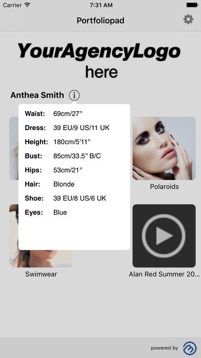 App Storeより引用Allows models, talent and artists to showcase their portfolios and videos on their iPad or iPhone. All your data, images and videos are managed and updated by your agent through Portfoliopad