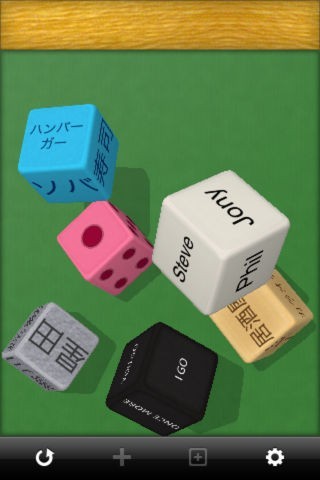お店選びやランチのメニューの決定に迷ったら、「Make Dice Lite」の新規ダイス作成機能を利用してみてはいかがでしょうか。オリジナルのサイコロを手軽に作成可能。面には数字だけではなく、単語や顔文字も入力できます。カレー、焼きそば、オムレツといったメニューを入力してランチメニューの決定に利用したり、会話ネタを入れて合コンを盛り上げたりと、アイディア次第で使い方の幅を広げることができるでしょう。テーブルの背景変更機能も用意。好みの写真や画像をカメラロールから選び、テーブルの背景として設定できるようになっています。さらに効果音のオンオフ機能なども充実しているのが特徴です。