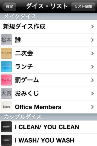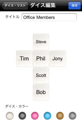 いつでも手軽にオリジナルのサイコロが作成できる便利アプリ「Make Dice Lite」 新規ダイス作成機能からはシーンに合わせたサイコロを作ることができます。 好みのカラーを設定しつつ、飲み会や二次会、罰ゲーム用など、それぞれのシチュエーションに合わせて作成してみましょう。 それぞれの面には数字だけではなく、文字や単語が設定できるのも楽しいポイント。 ハンバーガーや蕎麦、ステーキといった食べ物の名前を設定すれば、夕食メニューの決定にも役立ちます。