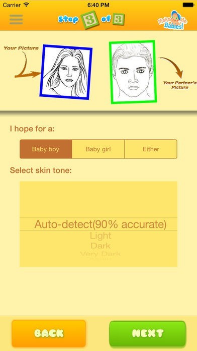 このツールは2人のパートナーの顔を参考にして、新しい赤ちゃんの顔を作ることができます。そのため二人のお子さんが一体どんな見た目なのかを大体の予想としてみる事ができます。