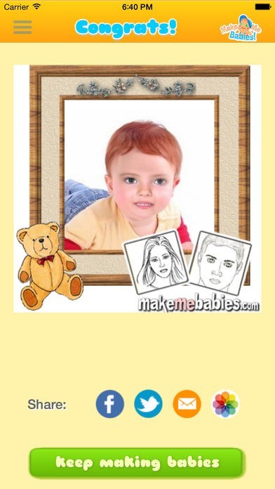 2人の画像から各パーツを融合させた赤ちゃんを見ることができる