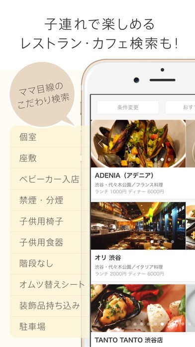 ◆一休レストランと連携した子連れで楽しめるレストラン・カフェが検索できる!