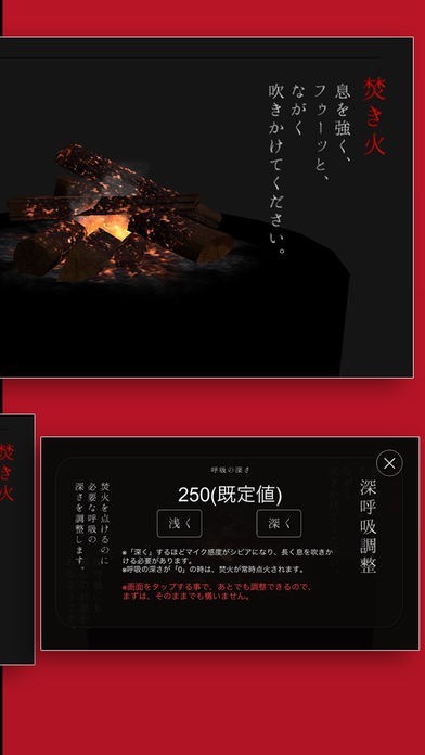 App Storeより引用深呼吸で焚火(たきび)がつく不思議なアートアプリ。デジタルリラクゼーションを体験しませんか?