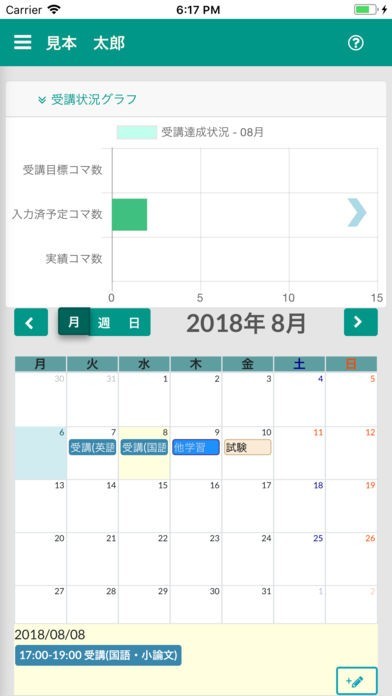 学習予定を登録すれば進歩を確認でき、校舎からの連絡も受けられる