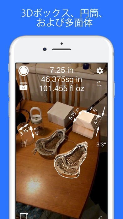 タップしてカメラをゆっくり動かすだけというシンプルな操作で様々な物体の長さや体積などを測定することができます。簡単操作で測ることができるため、ARや拡張現実感というものがよくわからないという方でも安心です。