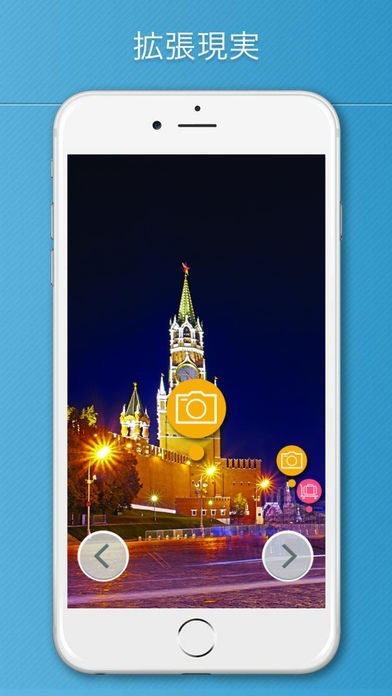 拡張現実。他の旅行ガイドとは違いこのアプリには、街を散策するのに便利なiPhone とiPadのツール(AR)が搭載されています。ARボタンをクリックし、360度回転すると、お勧めの観光スポットと行き方を表示してくれます。上下に画面をスクロールすることで、近くの観光スポットだけでなく、遠くの観光スポットも見ることが出来ます。