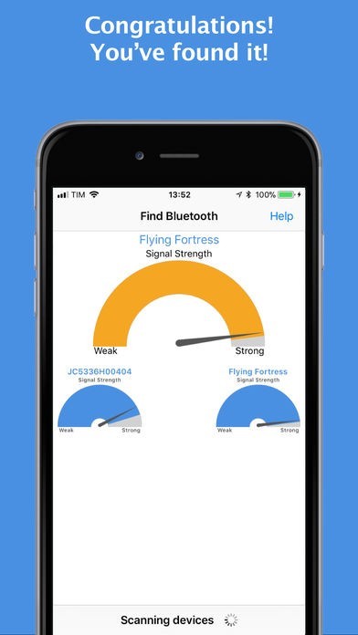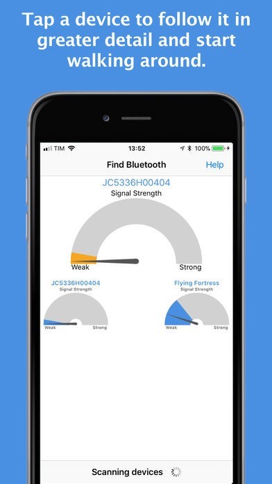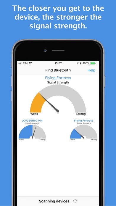 デバイスによってはBluetooth信号が非常に弱いものがあります。色々位置を変えながら受信できる場所を探す作業は手間と時間がかかり非効率です。「Find Bluetooth」なら各機器のBluetooth信号の強さをタコメーターのように表示でき、しかもリアルタイムに信号の強さを反映してくれるので目的のbluetooth信号を強く受信できる場所を簡単に探せます。