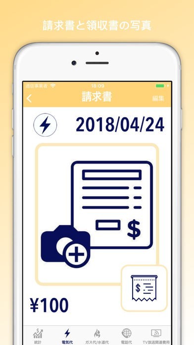 App Storeより引用My Home Bills は、あなたの家計の出費を常に把握するために欠かせない新しいアプリケーションです。電気・ガス代、電話料金、TV有料放送料金等の支払い請求書・領収書を画像かスクリーンショットにとって簡単に入力できます。