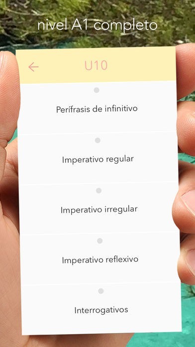 Me llamo Deberes. Yo soy una app para practicar el español. Soy una app perfecta para las personas que van a un curso de español A1. Con Deberes practicas la gramática, el vocabulario, los números, los artículos, las preposiciones y mucho, mucho más. Español A1 en una app.