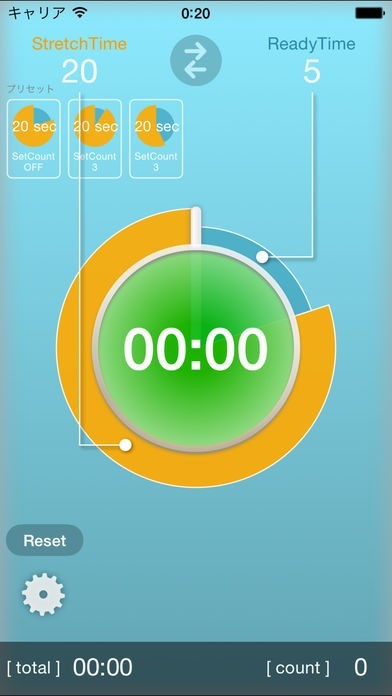 アプリのタイマーは色が変わっていきます。青色、赤色、緑色の3色で、タイマーの経過時間をチェックできます。色を基準にストレッチの経過時間をチェックすることができます。