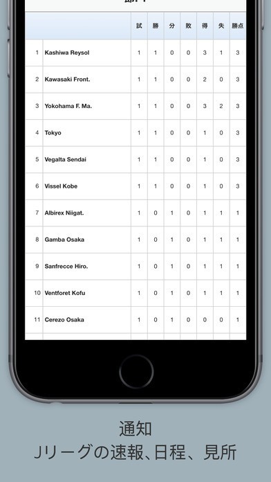 プッシュ通知機能が搭載されていて、試合でゴールが決まったらプッシュ通知でスマートフォンのホーム画面にお知らせをしてもらうことができるので素早くチェックすることができます。