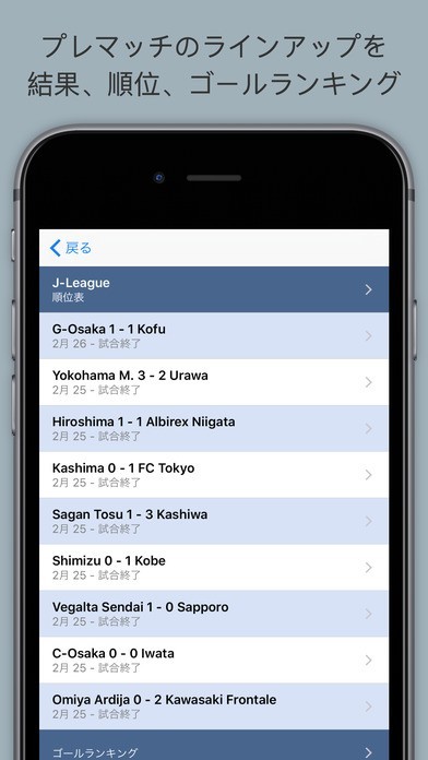 Jリーグチームのカップ戦やリーグ戦、天皇杯のライブスコアを確認することができるようになっていて、得点者やスターティングメンバーなどの詳細な情報も閲覧することができます。