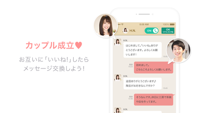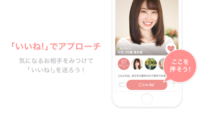誰でも手軽に使えます。「いいね!」や「メッセージ」で気になる相手とやり取りできます。