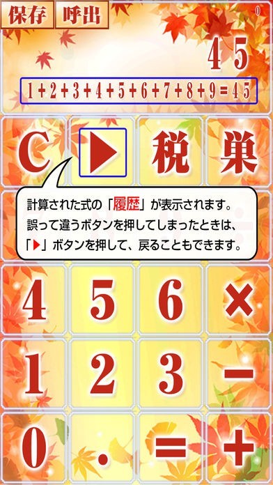 もみじ電卓〜秋に紅く輝く無料の計算機アプリ〜のスクリーンショット