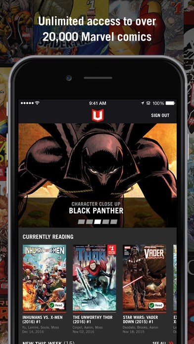 「Marvel Unlimited Comics」では海外ではもちろん日本でも人気のMarvelキャラクターが活躍するコミックを読むことができるようになっています。それも日本では中々入手が難しいアメコミバージョンです。コミックでは映画などでは描かれていない一面もあり、Marvelファンならばぜひチェックしたいところです。作品の序盤を楽しめる試し読みコーナーもあり、アメコミに触れたことはないけれど、どんなものか読んでみたいと言う場合にも使えます。