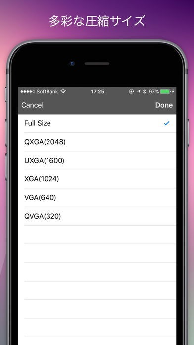複数の写真が簡単にリサイズ出来るようになっています。ファイルサイズの圧縮に対応しているので、端末内のデータを整理したい時や容量を節約したい際に重宝するでしょう。