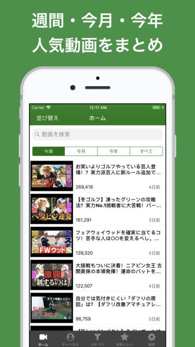 ・週間、月間、年間ごとの人気動画が見れます