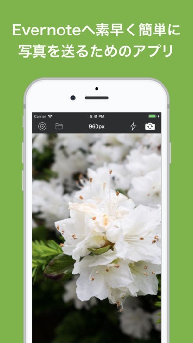 App Storeより引用CamEverはEvernoteへ簡単に写真を送るためのカメラアプリです。