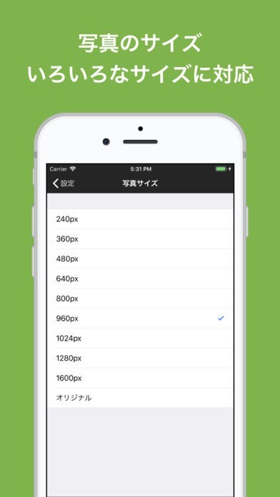 アプリを起動するとすぐに写真が取れるようになり、撮った写真はすぐさま自動的にEvernoteにアップロードされます。写真のサイズを自由に変更できるので、アップロード容量を減らせます。
