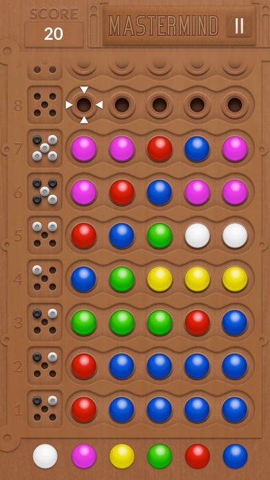行数は、これだけでの8の試み コードを推測する自由な を脳ゲーム を持って示したように、あなたはポイントが授与されたときに 色を推測 右と余分なボーナスポイントしたときにコードを解読 。余分なポイントも授与されている場合、この ロジックゲーム の初期段階で、あなた コードを破る 。