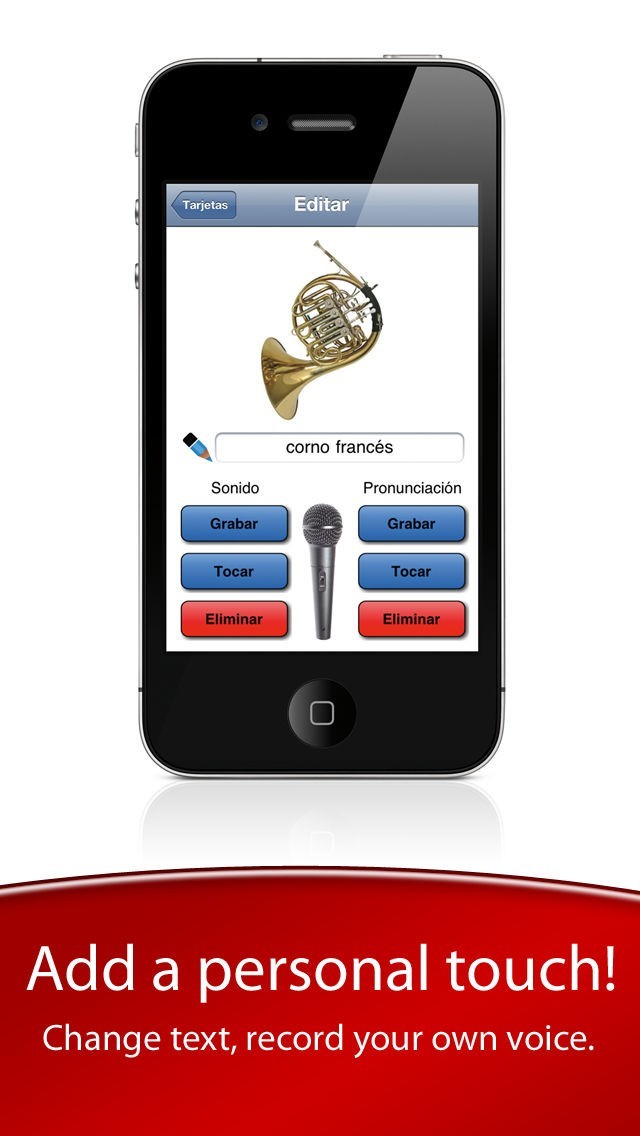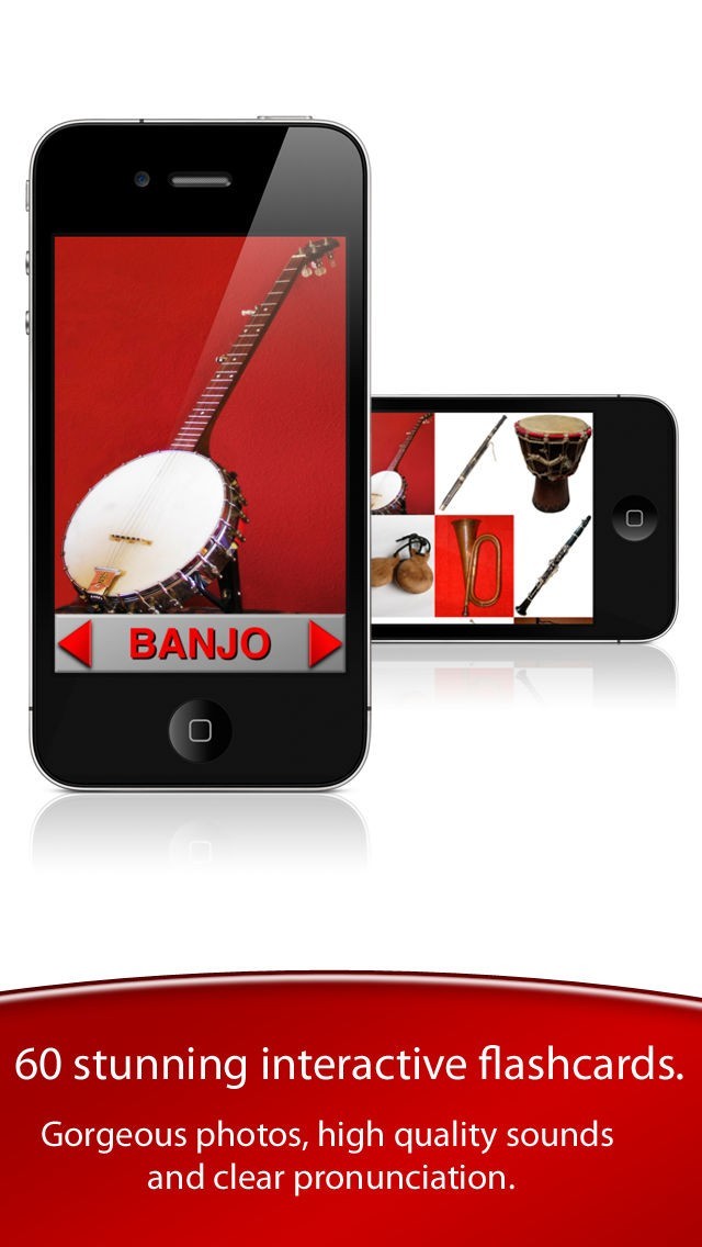 幼児期の子供達がゲーム感覚で楽しく楽器の名前が覚えられます。写真をタップすれば楽器の音が、名前をタップすれば楽器の名前を読み上げてくれます。言語は英語、フランス語、スペイン語から選べます。