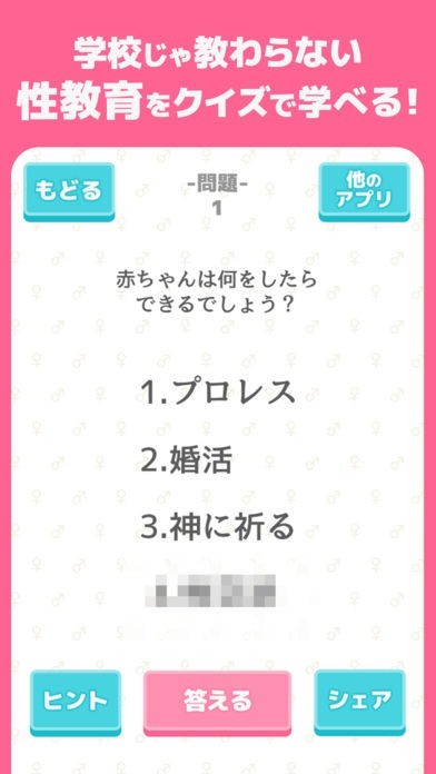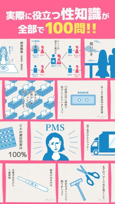 搭載された100問の性教育問題集!他人には聞きにくい知識も知れる!