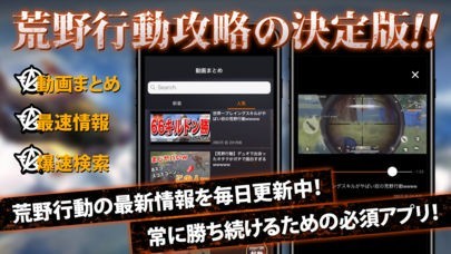 バトルロワイアルゲームである荒野行動における立ち回りなど効率的なプレイについて学ぶことができる攻略動画を、スマートフォンを使って視聴することが可能なアプリとなっています。