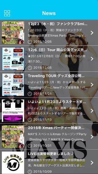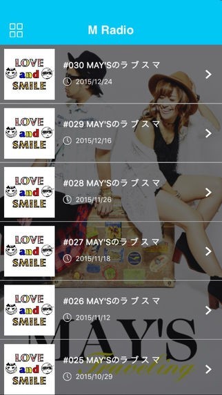 App Storeより引用MAY'Sのオフィシャルアプリ。MAY'Sのすべての楽曲やアプリ限定配信の新曲、メンバー二人がお届けするラジオなど、あらゆるMAY'Sが楽しめるコンテンツ満載!