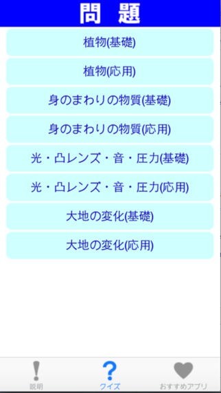中学1年生で習う理科の全範囲を無料で学習することができるアプリです。全範囲の問題をバランスよく掲載してあり、無料なので気兼ねすることなく学習することができます。