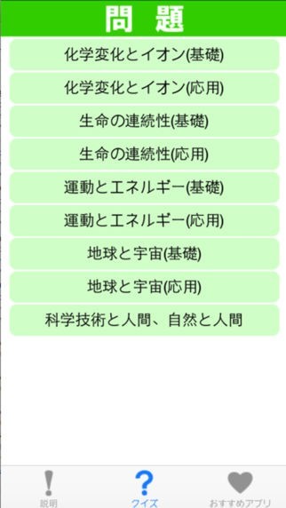 高校受験に向けて理科の知識を定着させておきたいというときに役立つアプリが中学3年理科です。基礎問題から応用編までレベルに合わせて利用することができます。また、問題数は全部で288問と豊富です。どんどん問題をついて知識を定着させていくことができます。問題の解説が丁寧なので、暗記に頼るのではなくしっかりと理解をする勉強を進めていくことが可能です。中学3年で習う理科に対して苦手意識があるという人にも役に立つアプリになっています。