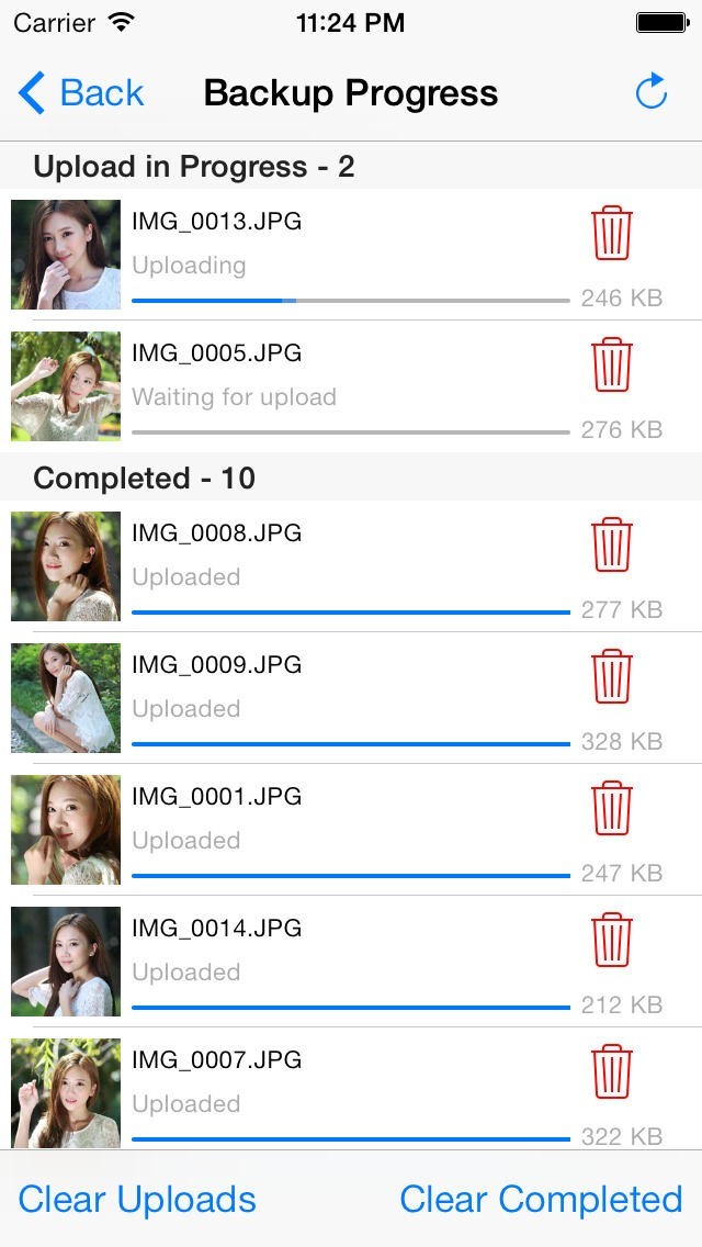 - Open the "Backup Progress" page in order to upload your photos