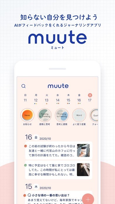 App Storeより引用muuteは、あなたの思考と感情を分析して、新しい自分を知るためのフィードバックをくれるAIジャーナリング・アプリです