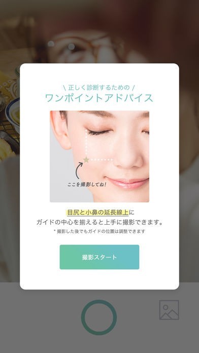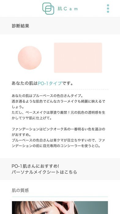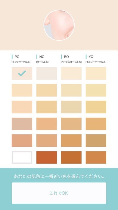 iPhoneのカメラで肌を撮影して、あなたのお肌色のパターンがチェックできます。