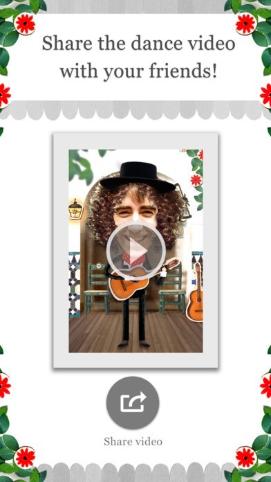 ちょっとした息抜きをしたい時や、冗談で友達に他愛のないメールなどを送りつけて遊びたい時は、このアプリがおすすめです。カメラで撮った自分や友達の顔写真をアプリに登録して好みの衣装を選んで数秒待つと、顔の部分だけ写真をはめ込んだアニメタッチのアバターが陽気なギターのスペイン音楽に合わせてダンスを始めます。仕事の合間などに何も考えずに気分転換するにはうってつけなゆるさがいい感じです。踊っている様子の動画をFacebookやTwitter、YouTube、メールでシェアするのも簡単です。