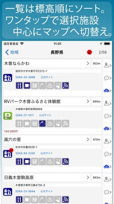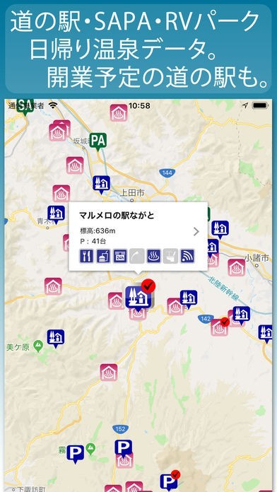 車中泊は節約目的だけでなく安全運転維持に重要な対策となりますが、地図やナビですぐに見つけられるものではありません。そんな弱点をカバーできるアプリとなっており、道の駅やSA・PA以外にRVパークの場所をマップ上で確認できます。また、営業時間や駐車場台数などの詳細も確認できますので、あちこち探し回らずにピンポイントで目的地を決めることも可能です。