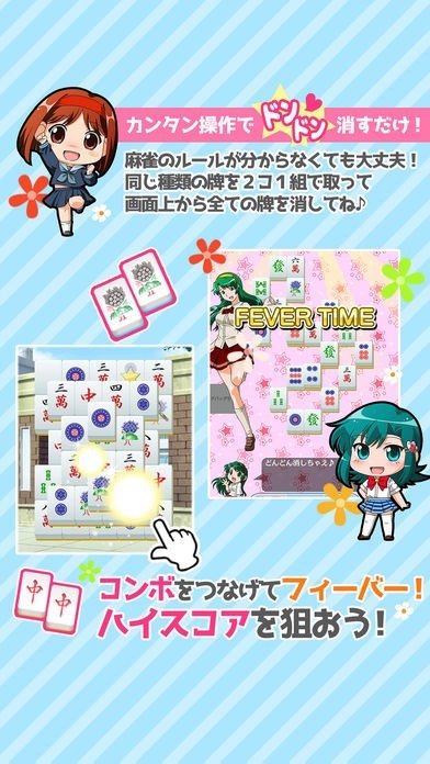 連続して牌を消していくとフィーバータイムが発生!時間内に牌を消すと高得点となります!