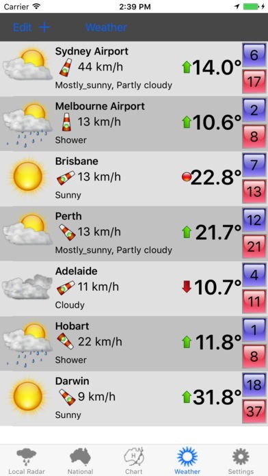 Oz weather radar allows you to view the BOM (Bureau of Meteorology) weather radar information located through Australia. Each radar image can be panned and zoomed to get a better look at the area you are interested in. Approximately 50 radars cover a large proportion of Australia to bring you the most up to date weather information.