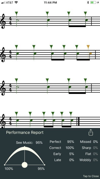 - The Complete-Melody Trainer composes entire melodies for you to sight-read. See Music listens to your playing and then gives you a report with rhythm and pitch accuracy for every note in the piece so you know if you were flat or sharp, late or early, or you missed the note all together. The final report also includes an overall score and other stats.
