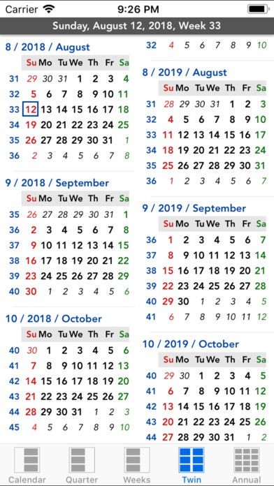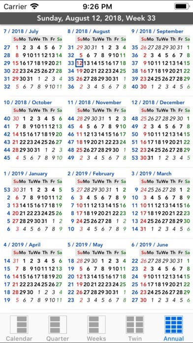 四半期や年間、半年など好みの表示方法でカレンダーが見れる
