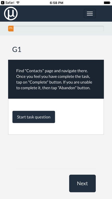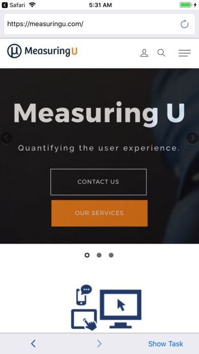 App Storeより引用MeasuringU IQモバイルアプリは、参加者がiPhoneやiPadでタスクによる調査を受けることを可能にします。当社の調査を受けるだけで、参加者がモバイルウェブサイトのどこをクリックしたかを記録します。